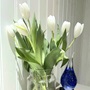 FIF-ordföranden Patrik "Putta" Andersson var den som fick ta emot en blåvit gåva i form av ett vackert glaskonstverk samt en tulpanbukett.